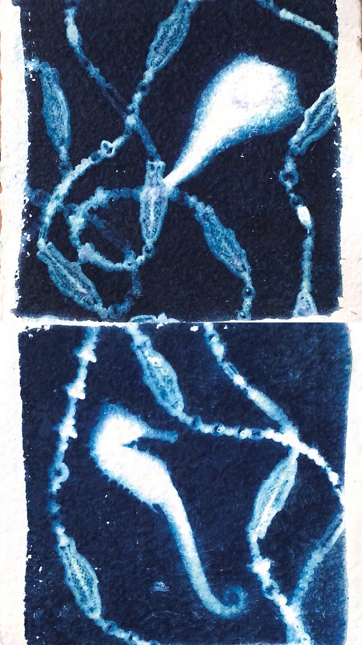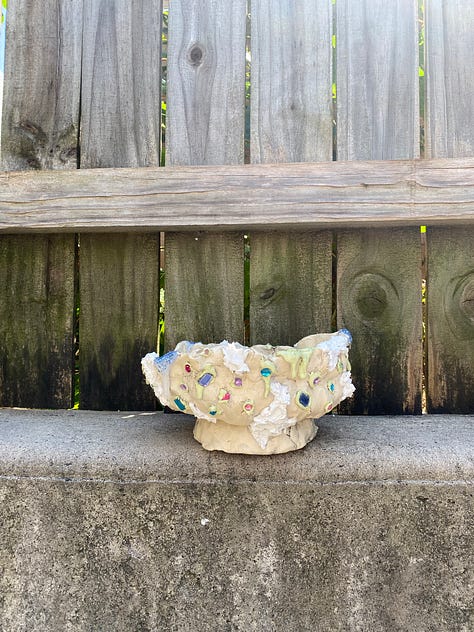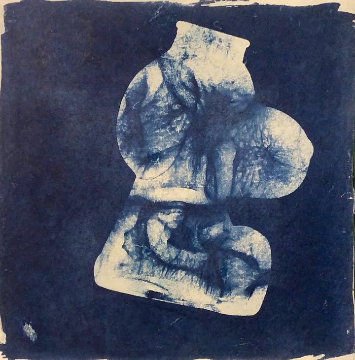 I found myself gravitating towards more analog, physical, and interactive practices. Instead of picking up my camera, I was trying to make photographs with chemicals, sunlight, and random objects in my backyard. I continued to work on various sculptures made of clay, tinfoil, spackle, and plastic gemstones. I wanted to see the world in way that made more sense to me than the current world we are living in.